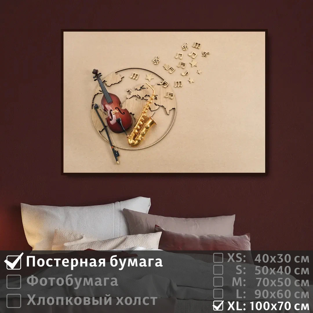 Оживите стены уникальным декором! Плакат Музыкальные Ноты И Инструменты 100х70 см печатается на трех материалах:
