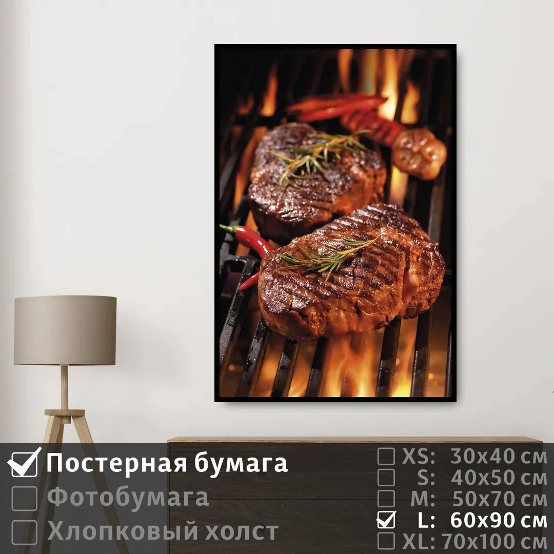 Оживите стены уникальным декором! Плакат Мясо На Огне 60х90 см печатается на трех материалах: