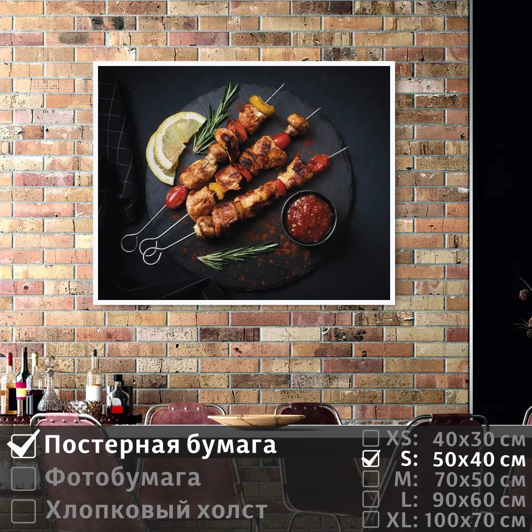 Оживите стены уникальным декором! Плакат Мясо На Шампурах С Красивой Сервировкой 50х40 см печатается на трех материалах: