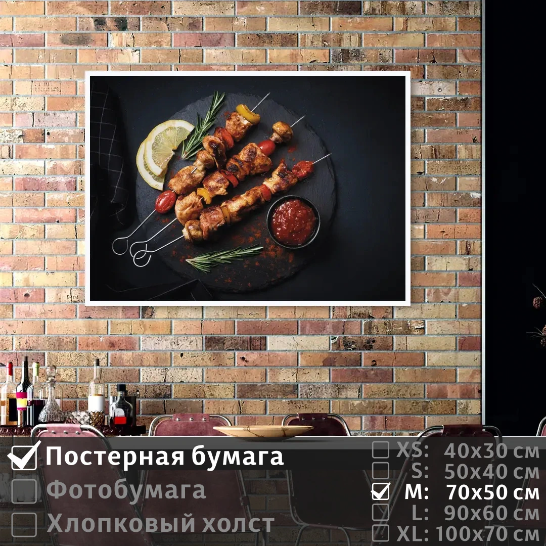 Оживите стены уникальным декором! Плакат Мясо На Шампурах С Красивой Сервировкой 70х50 см печатается на трех материалах:
