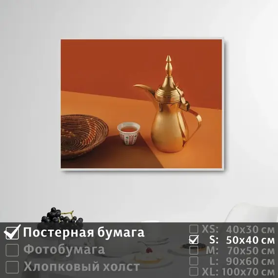 Оживите стены уникальным декором! Плакат Напиток В Чашке И Чайник В Восточном Стиле 50х40 см печатается на трех материалах: