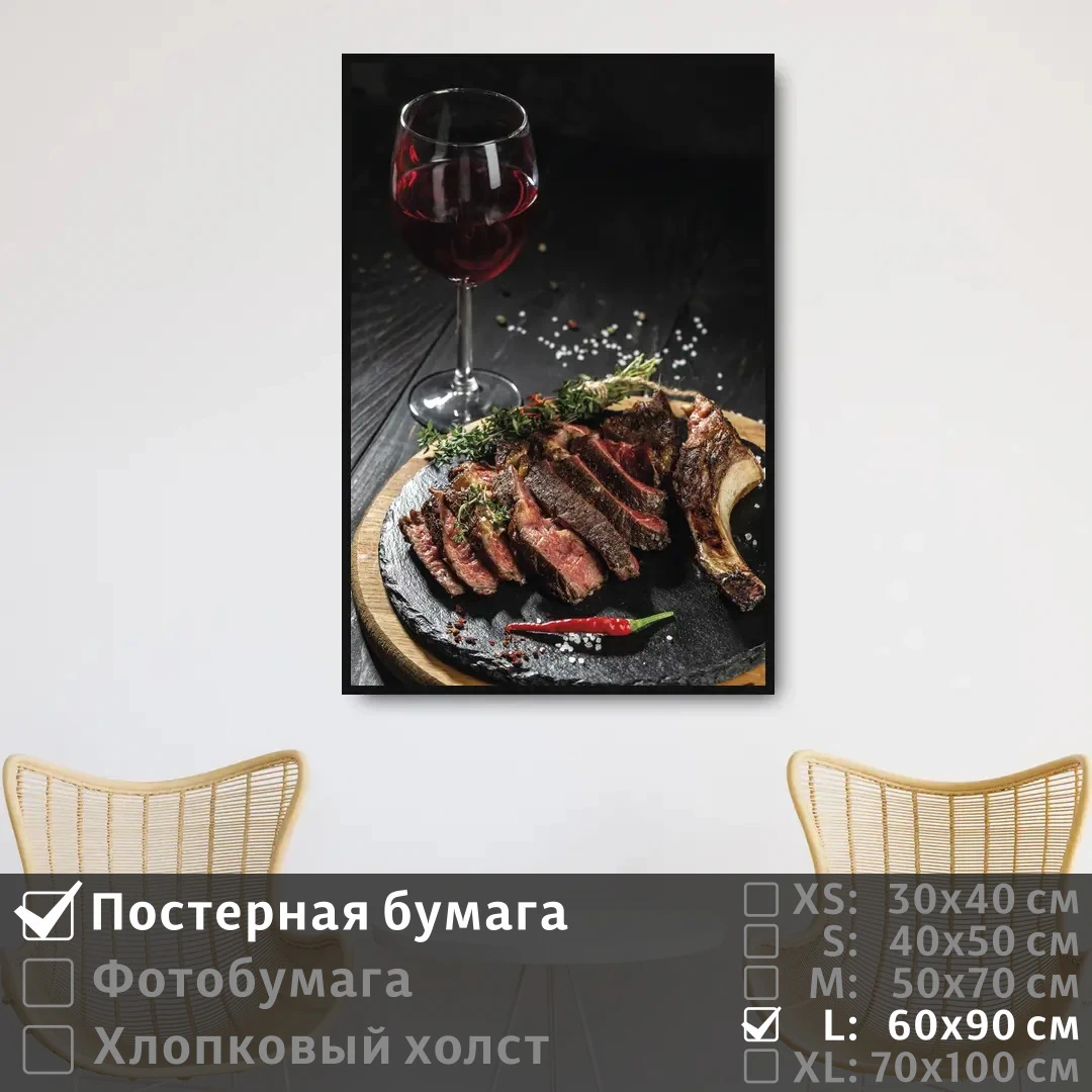 Оживите стены уникальным декором! Плакат Натюрморт Мясо И Бокал Вина 60х90 см печатается на трех материалах: