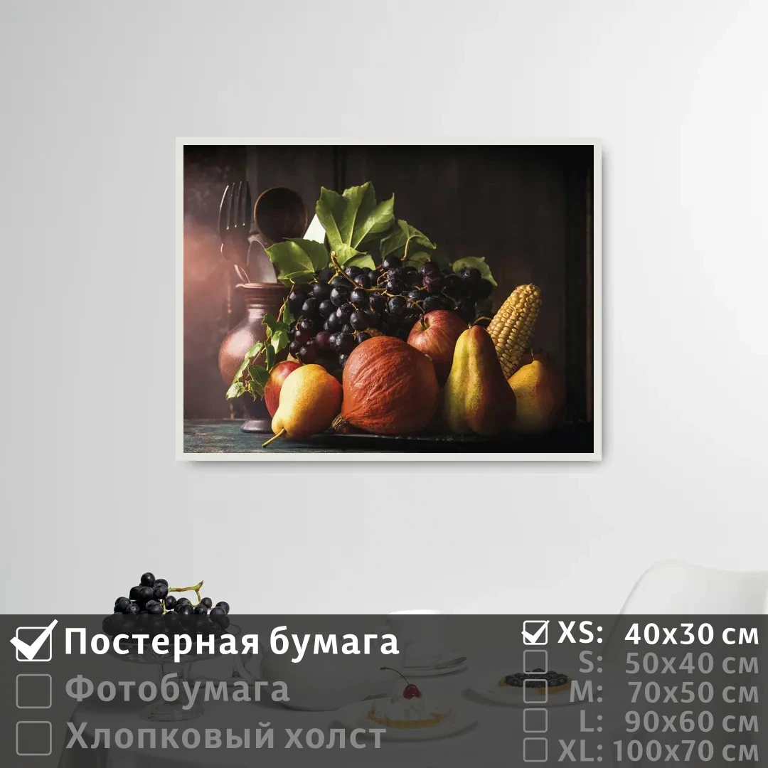 Оживите стены уникальным декором! Плакат Натюрморт Осенний С Виноградом 40х30 см печатается на трех материалах: