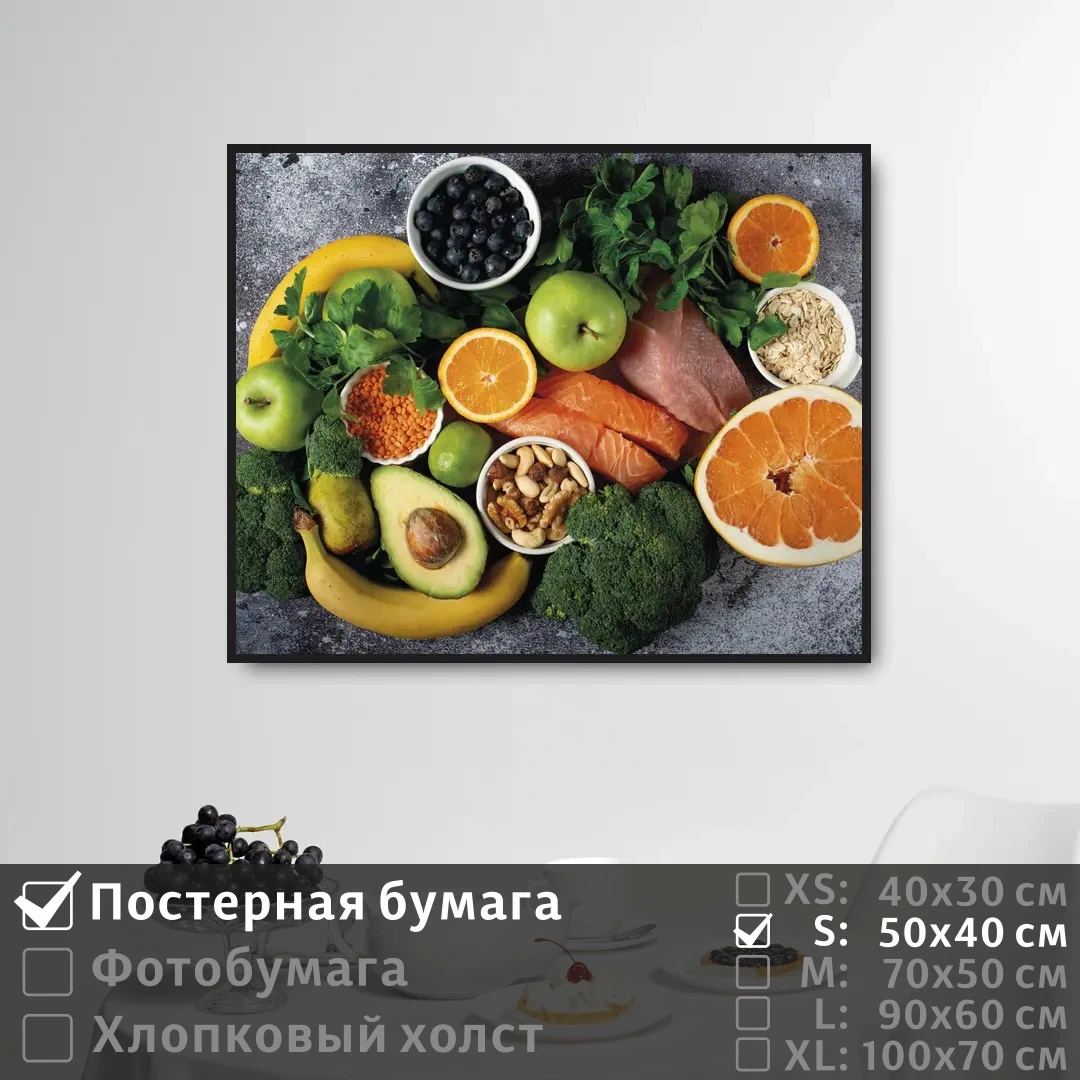 Оживите стены уникальным декором! Плакат Натюрморт Овощи Зелень Фрукты 50х40 см печатается на трех материалах:
