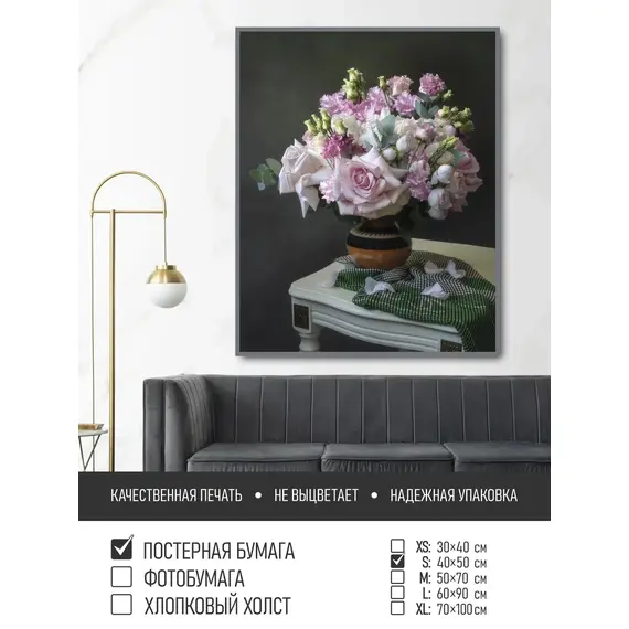 Оживите стены уникальным декором! Плакат Натюрморт Роскошный Букет 40х50 см печатается на трех материалах: