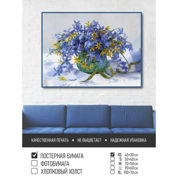 Оживите стены уникальным декором! Плакат Натюрморт В Синих Оттенках 40х30 см печатается на трех материалах: