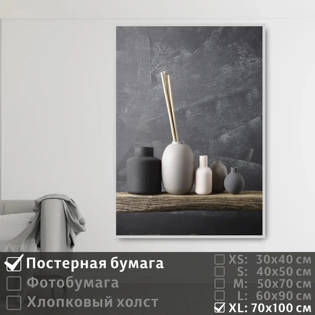Оживите стены уникальным декором! Плакат Натюрморт Ваза На Деревянной Полке 70х100 см печатается на трех материалах: