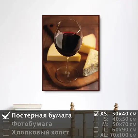 Оживите стены уникальным декором! Плакат Натюрморт Вино И Сыр 30х40 см печатается на трех материалах: