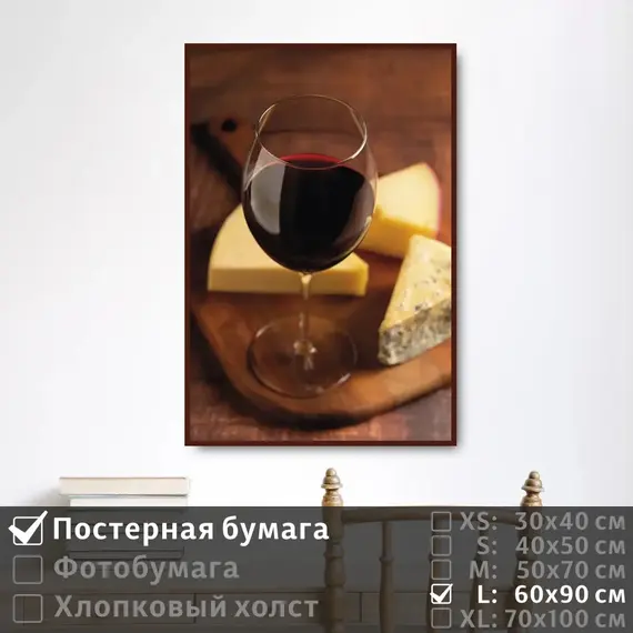 Оживите стены уникальным декором! Плакат Натюрморт Вино И Сыр 60х90 см печатается на трех материалах: