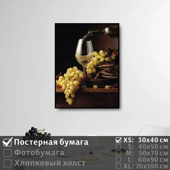 Оживите стены уникальным декором! Плакат Натюрморт Вино И Виноград 30х40 см печатается на трех материалах: