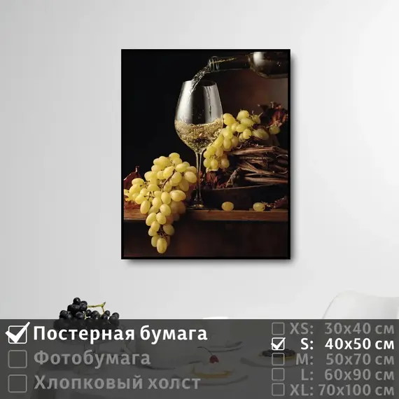 Оживите стены уникальным декором! Плакат Натюрморт Вино И Виноград 40х50 см печатается на трех материалах: