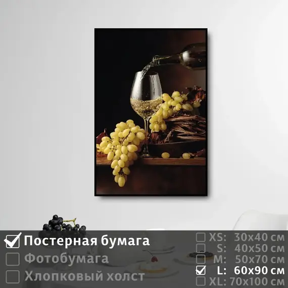 Оживите стены уникальным декором! Плакат Натюрморт Вино И Виноград 60х90 см печатается на трех материалах: